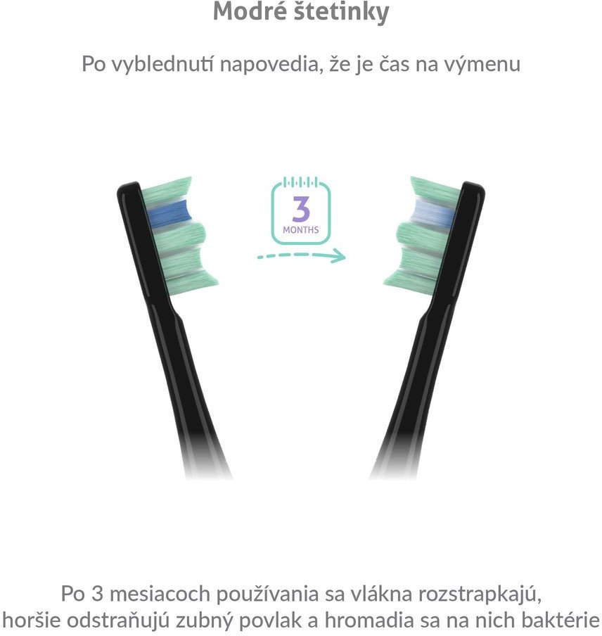 Hlavicu kefky treba približne po 3 mesiacoch vymeniť. To indikujú modré štetinky, ktoré postupne zbelejú.