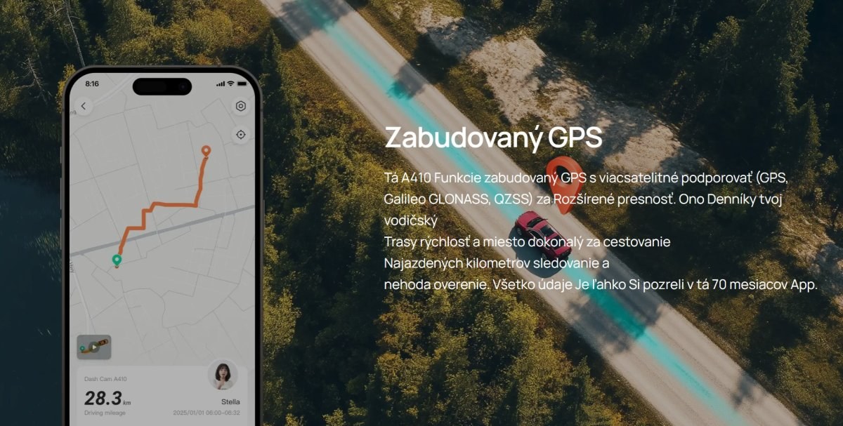 Integrovaný GPS modul podporuje systémy GPS, Galileo, GLONASS a QZSS, čo zaručuje maximálnu presnosť. Kamera zaznamenáva trasu, rýchlosť aj polohu – ideálne pre služobné cesty, cestovné denníky alebo ako dôkaz pri nehode. Všetky údaje nájdeš priamo v aplikácii 70mai.