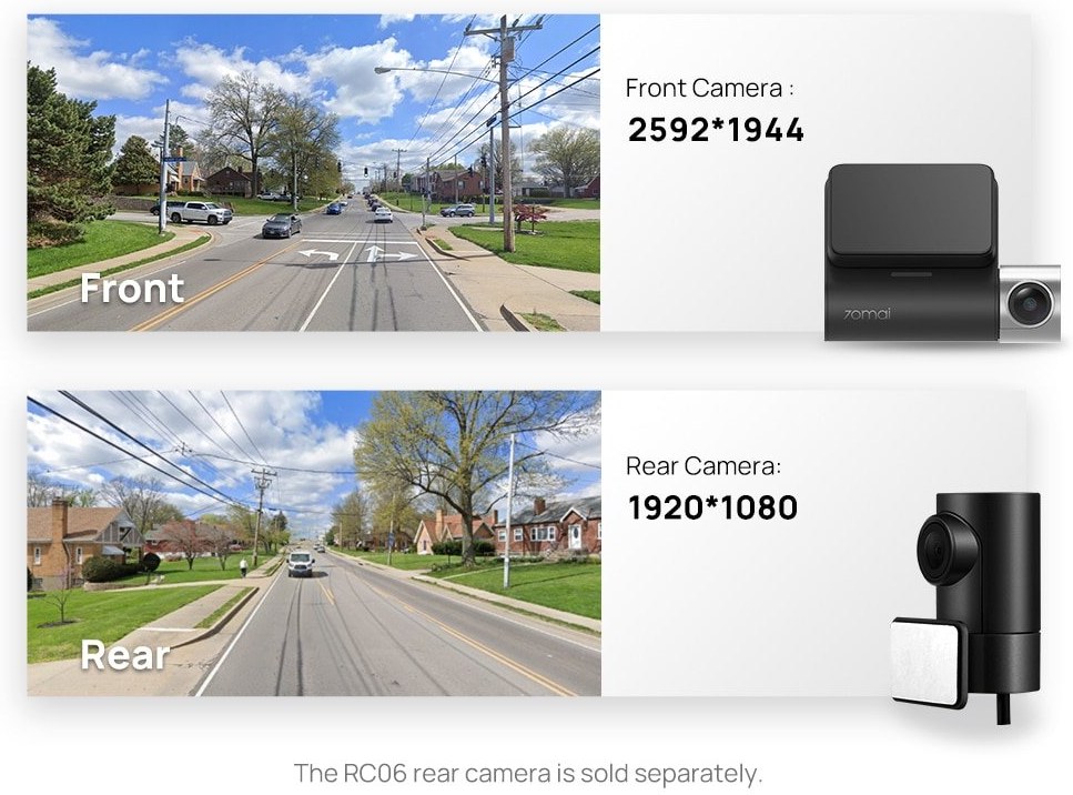 70Mai autokamera Pro Plus +, ktorá je kompatibilná so zadnou kamerou RC06 (súčasťou balenia), dokáže dosiahnuť dvojkanálové nahrávanie a poskytuje všestrannú ochranu, aby ste mohli jazdiť bez obáv. V dvojkanálovom režime si predná kamera zachováva rozlíšenie až 1944P, zadná kamera zaznamenáva v 1080P.