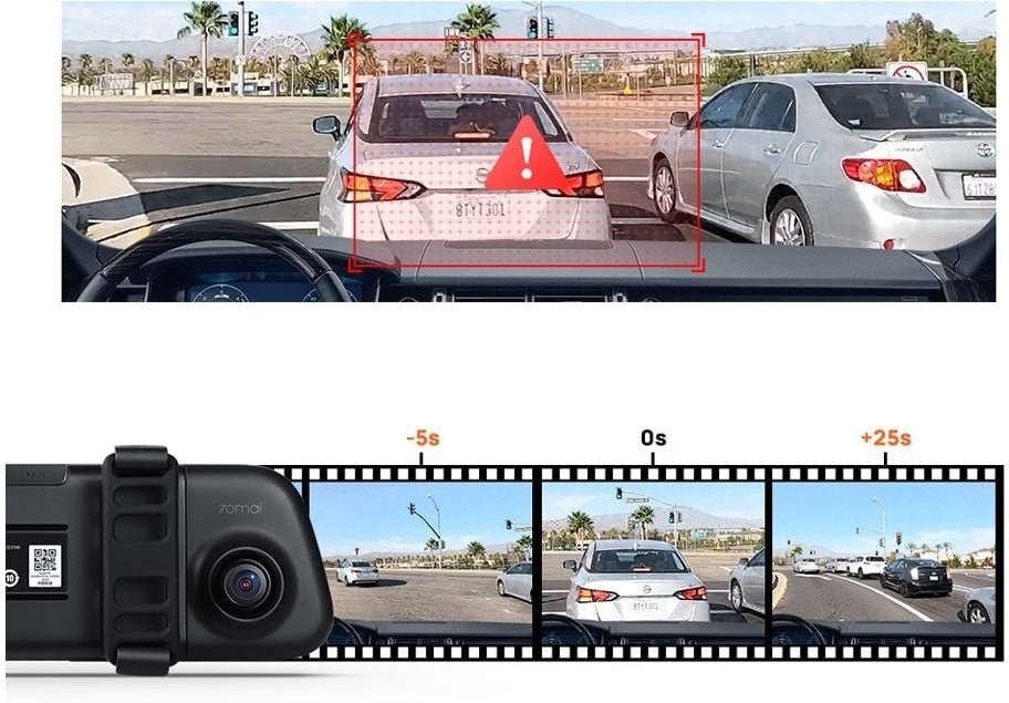 Kamera 70Mai S500 je vybavená 9,35" plne laminovaným dotykovým displejom, ktorý umožňuje jednoduché ovládanie a nastavenie kamery. Dotykový displej nahrádza fyzické tlačidlá a prináša moderné a intuitívne ovládanie. Pomocou gest môžete upravovať jas obrazovky, posúvať obraz v zábere alebo prepínať medzi predným a zadným fotoaparátom.Displej si môžete prispôsobiť podľa svojich potrieb, a to v režime rozdelenej obrazovky aj pomocou funkcie obraz v obraze.