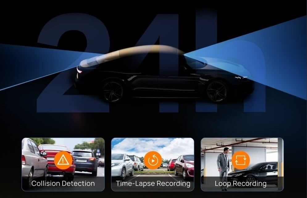 Ak sa zistí neobvyklý pohyb alebo kolízia, kamera automaticky spustí nahrávanie. Vďaka vyrovnávacej pamäti sa kamera A510 postará o záznam 5 sekúnd pred udalosťou a 25 sekúnd po nej, čím poskytne úplný obraz o situácii. Okrem toho parkovací režim umožňuje nepretržité monitorovanie okolia vozidla aj v noci.Na využívanie funkcií je potrebné zakúpiť hardvérovú súpravu 70mai s napájaním USB-C, ktorá nie je súčasťou balenia.