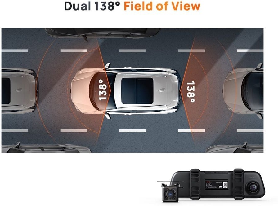 Videokamera 70Mai S500 je vybavená pokročilým systémom duálneho HDR, ktorý zabezpečuje vynikajúcu kvalitu záznamu aj pri meniacich sa svetelných podmienkach. Snímač zabezpečuje správne vyváženie svetlých a tmavých oblastí obrazu, čo je ideálne v situáciách, ako je výjazd z tunela alebo jazda na priamom slnečnom svetle. Vďaka širokému zornému poľu 138° kamera pokrýva nielen prednú, ale aj zadnú časť vozidla, čím minimalizuje mŕtve uhly a poskytuje komplexný prehľad o dianí na ceste.Intuitívne ovládanie pomocou dotykovej obrazovky