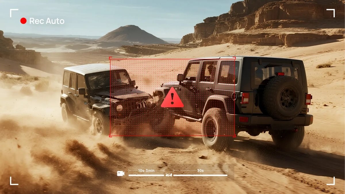 Pufrované núdzové nahrávanie uchováva až 3 minúty pred udalosťou a 30 sekúnd po nej v chránenom priestore. Vstavaný GPS modul zaznamenáva rýchlosť, čas aj presné súradnice. Bezpečnostný systém ADAS upozorní na nebezpečné situácie – nechcené opustenie jazdného pruhu, príliš krátky odstup, pohyb chodcov či cyklistov v blízkosti.