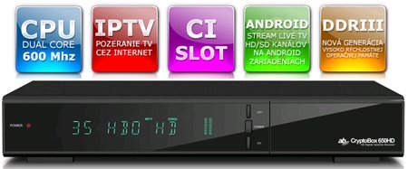Nástupca najúspešnejšej rady satelitných prijímačov AB CryptoBox 550HD. Kombinácia digitálneho satelitného prijímača a multimediálneho prehrávača v plnom Full HD 1080p rozlíšení. Možnosť sledovania HD programov, IPTV funkcia, pozeranie živého vysielania na Android zariadeniach, prehrávania multimediálneho videa, obrázkov a hudby.Nahrávanie programov v reálmom čase, jednoduché časové nahrávanie cez EPG sprievodcu alebo TIMESHIFT s časovým posunom v nahrávke. X-tras panel s množstvom funkcií: Množstvo Hier, FTP Downloader, Predpoved počasia, RSS prehliada správ, Kurzový lístok, Burzový index a množstvo iných aplikácií. FTP Downloader pre zálohu, obnovu a prenos súborov z USB na FTP alebo z FTP na USB (setting, firmware, video, MP3 ...)