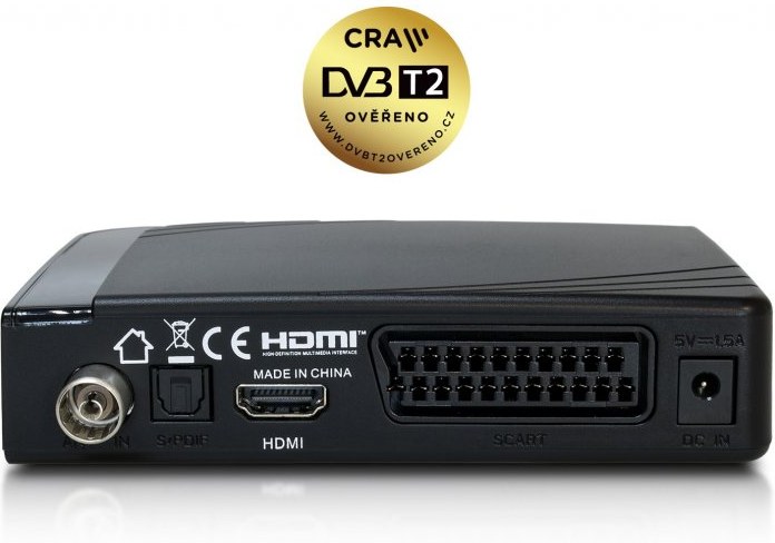 Prijímač je určený pre terestriálne a káblové vysielanie v najnovších normách DVB-T / DVB-T2 a DVB-C s podporou kodeku H.265 HEVC. Jednoduché maličké prevedenie vhodné aj na umiestnenie za TV prijímač. Obsahuje jednu čítačku kariet, HDMI výstup, Scart výstup pre staršie TV prijímače, USB 2.0, S/PDIF optický audio výstup a vstup pre externé IR čidlo (IR čidlo nie je súčasťou balenia, dá sa dokúpiť ako príslušenstvo). Možnosť multimediálneho prehrávania v plnom Full HD 1080p rozlíšení. Nahrávanie programov je možné v reálnom čase alebo cez jednoduché časové nahrávanie z EPG. EPG sprievodca na 7 dní. Balenie obsahuje externý zdroj a diaľkové ovládanie.Vlastnosti produktu: