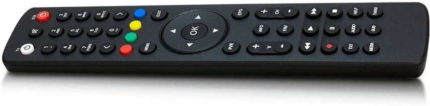 S týmto ovládaním môžete okrem prijímača zapnúť aj televízor a ovládať hlasitosť na Vašej TV. Intuitívne rozmiestnenie tlačidiel v ergonomickom slim dizajne a s matnou povrchovou úpravou pre elimináciu odtlačkov prstov. Segmentačné rozdelenie tlačidlových skupín. Farebné tlačidlá sú umiestnené v blízkosti tlačidla OK a smerových tlačidiel. Optimálnejšie rozdelenie tlačidiel pre orientáciu po hmate.Technická špecifikácia