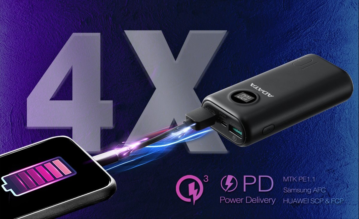 Chcete stráviť menej času nabíjaním a viac času používaním powerbanky ADATA P10000QCD na cestách. Kompaktná batéria P10000QCD vám ušetrí čas na dôležitejšie činnosti. Je vybavená veľkou batériou s kapacitou 10 000 mAh, tromi portami USB a podporuje širokú škálu technológií rýchleho nabíjania.Akú technológiu rýchleho nabíjania potrebujete?