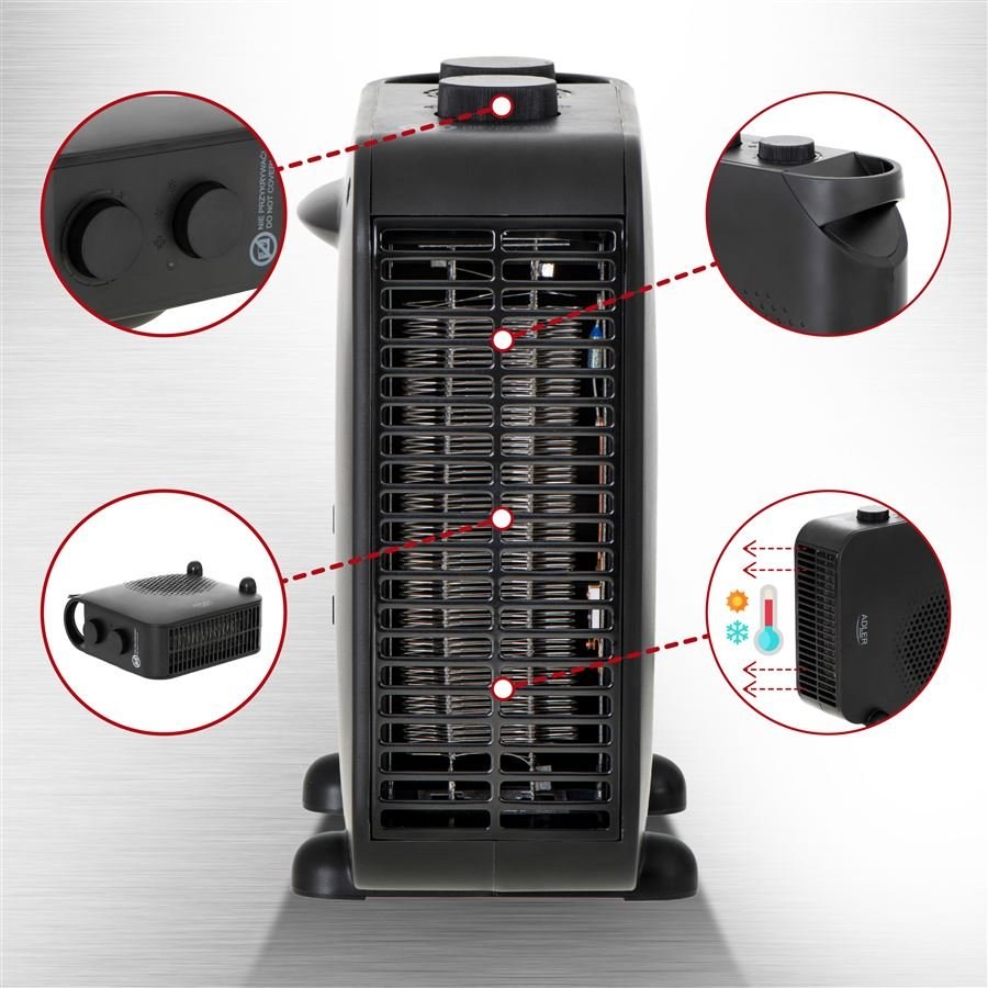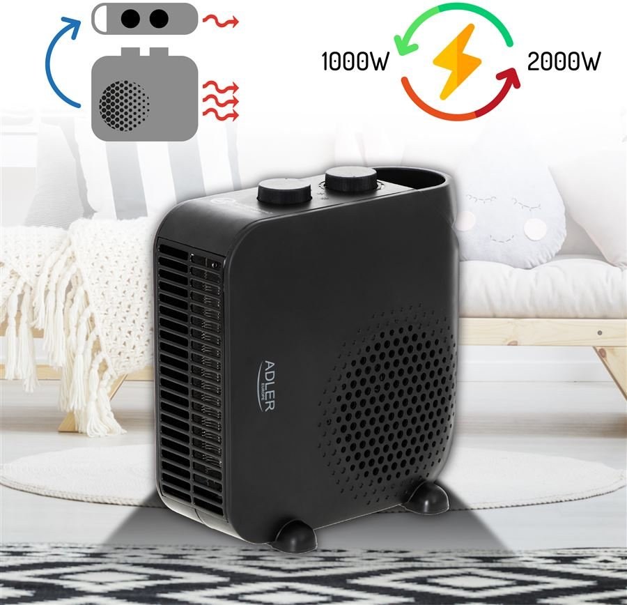 Teplovzdušný ventilátor Adler AD7725 pracuje pri dvoch vykurovacích výkonoch a teplota je termostaticky riadená. Vďaka tomu je možné množstvo horúceho vzduchu emitovaného ohrievačom prispôsobiť potrebám jeho užívateľa. AD7725 možno použiť aj ako ventilátor na ochladzovanie vzduchu. Vďaka týmto funkciám je teplovzdušný ventilátor užitočný v horúcich aj chladných dňoch. Z bezpečnostných dôvodov je zariadenie vybavené ochranou proti prehriatiu. Ďalšou výhodou je skutočnosť, že AD7725 môžete používať vo vodorovnej aj zvislej polohe.Charakteristika a technické údaje: