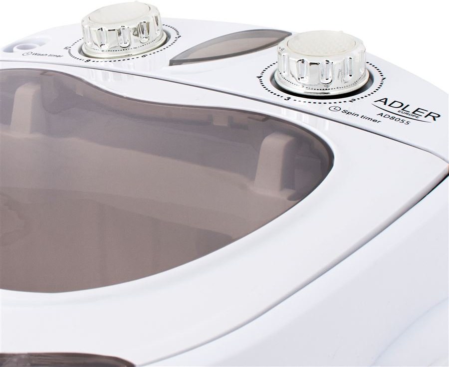 Práčka a odstredivka Adler AD8055 je ideálna na malé prádlo a jemné oblečenie. Prístroj je vybavený dvoma samostatnými programami a dvoma samostatnými komorami: na pranie - kapacita 3 kg a na odstreďovanie vypraného oblečenia - kapacita 1 kg. S malým množstvom práce si môžete celé leto užívať čisté oblečenie, čo je obzvlášť dôležité, ak cestujete s malými deťmi! Menej času na upratovanie je viac času pre rodinu! Nemusíte sa báť, že zariadenie zaberie veľa miesta. Jedná sa o prenosnú práčku s malými rozmermi 360x370x530 mm. Vďaka nej si už nemusíte robiť starosti s tým, ako budete na ceste prať oblečenie a ako ho rýchlo vysušiť!