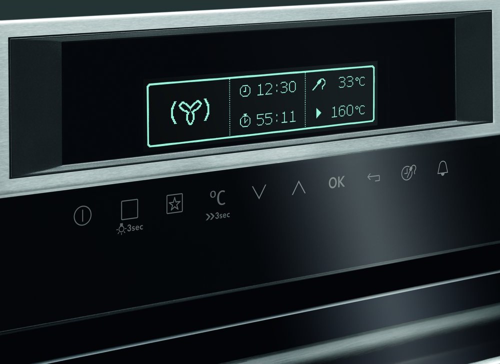 Funkcie rúry: Dolný ohrev, Pečenie chleba, Tradičné pečenie, Rozmrazovanie, Kysnutie cesta, Sušenie, Mrazené pokrmy, Parné pečenie, Gril, Vysoká vlhkosť, Nízka vlhkosť, Udržiavanie teploty, Vlhký horúci vzduch, Pečenie pizze, Ohrev tanierov, Zaváranie, Pomalé pečenie, Parná regenerácia, Teplovzdušné pečenie, Turbo gril