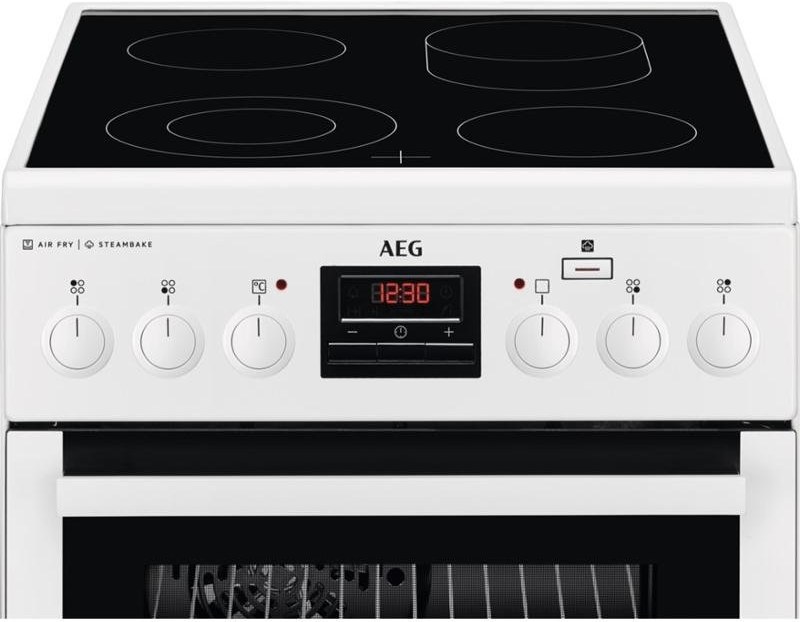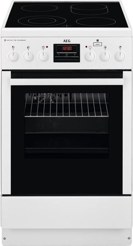 sporák sklokeramický, energetická trieda A, farba biela, objem 58 l, gril, teplovzdušné pečenie, rošt na výsuvnej lište, varenie v pare, elektrické napätie 230 V, 4x varná platnička/plochaZobraziť viac