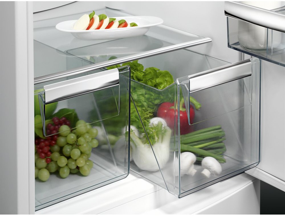 - Zásuvky chladničky: 2 polovičnej šírky, priehľadný plast