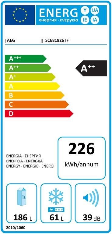 Systém energetického hodnotenia EÚ nezávisle hodnotí domáce spotrebiče podľa ich energetickej účinnosti – a udelil tejto chladničke s mrazničkou hodnotenie energetickej účinnosti A++. Rozdiel je jasný: pri skriňových chladničkách je trieda A++ o 21 % úspornejšia v porovnaní s triedou A+.