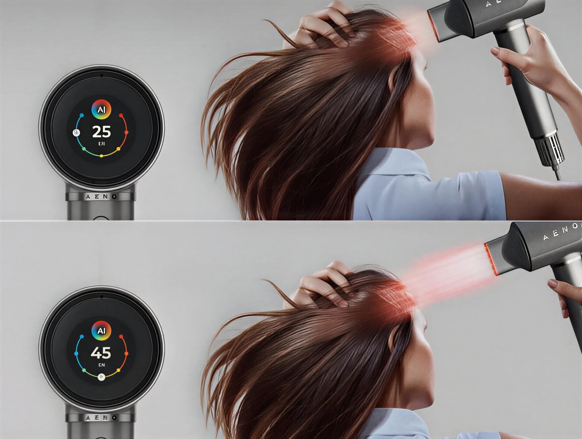 Kompaktný a ľahký fén s vysokým výkonom, ionizáciou, AI ochranou proti prehriatiu a inteligentným nastavením teploty, ktorý dodáva vlasom lesk bez statickej elektriny