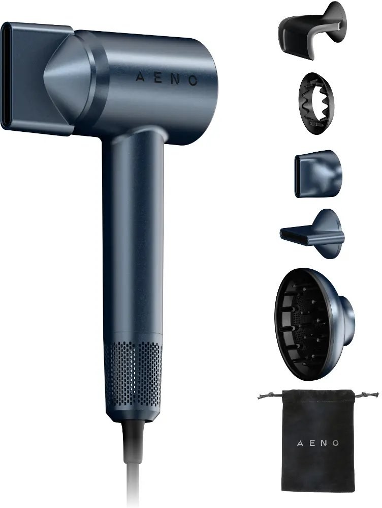 AENO HD3 ponúka až 10 kombinácií nastavení – 5 úrovní teploty a 2 rýchlosti prúdenia vzduchu. Vďaka tomu si môžete prispôsobiť sušenie presne podľa typu vlasov a požadovaného výsledku. Na LED displeji sa zobrazujú aktuálne nastavenia, čo umožňuje presnú kontrolu nad stylingom. Súčasťou balenia je 5 magnetických nadstavcov: difuzér, koncentrátor, stylingová tryska, hrebeňový nadstavec a tryska s efektom Coanda – každý z nich je určený na špecifický účel, od uhladenia po objem.