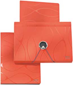 Aktovka z nepriehľadného polypropylénu na prehľadné ukladanie a prenos dokumentov do formátu A4. Vonkajší matný povrch s plastickým vzorom vĺn, vnútorný povrch kontrastnej antracitovej farby.Šesť roztiahnuteľných priehradiek s papierovými rozlišovačmi, jedna 2 cm široká priehradka, vrecko na vizitku, na prednej chlopni vrecko na CD. Väčšie balenie 5 ks.Farba: oranžová