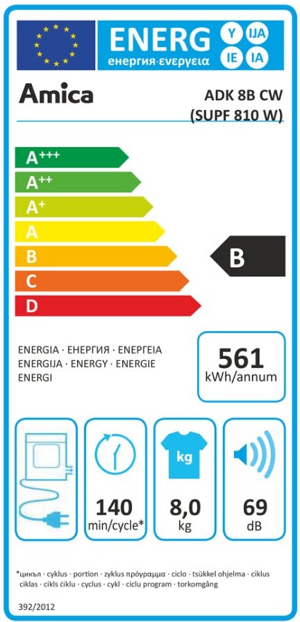 sušička prádla, energetická trieda B, hlučnosť 69 dB, váha náplne 8 kgZobraziť viac
