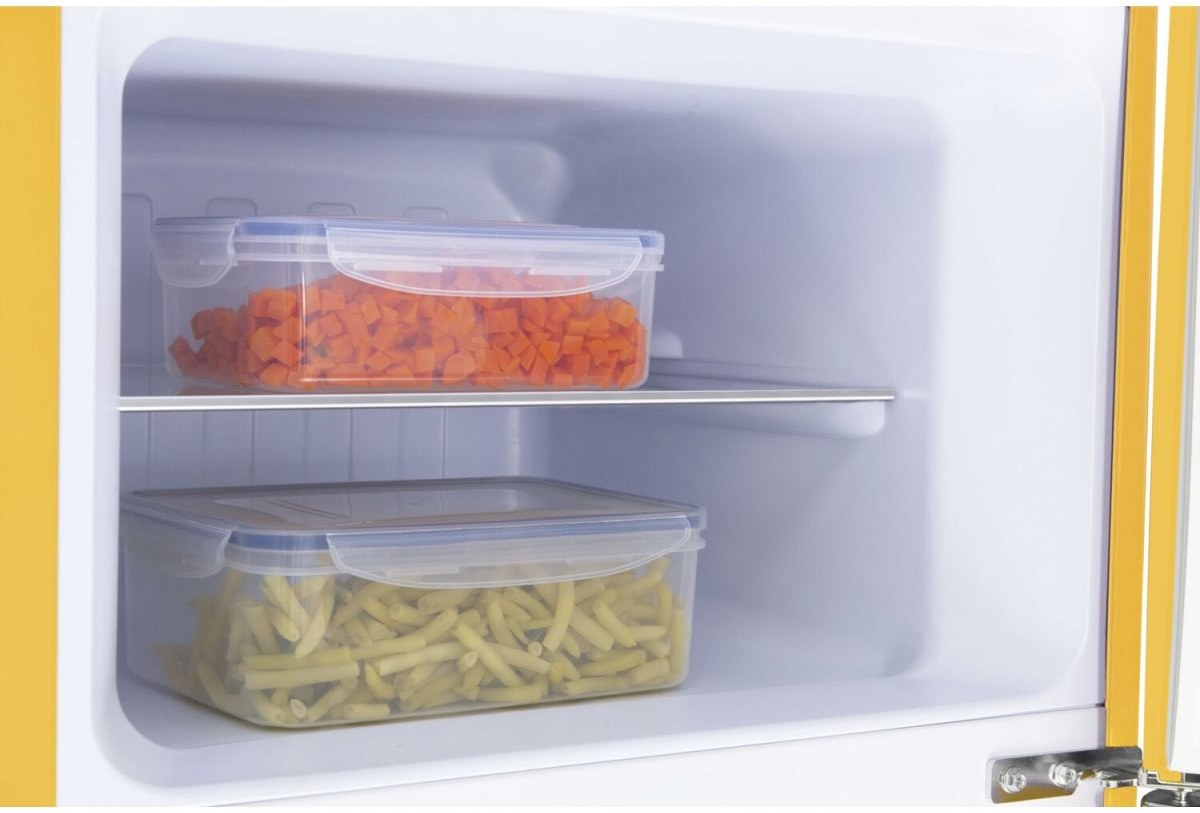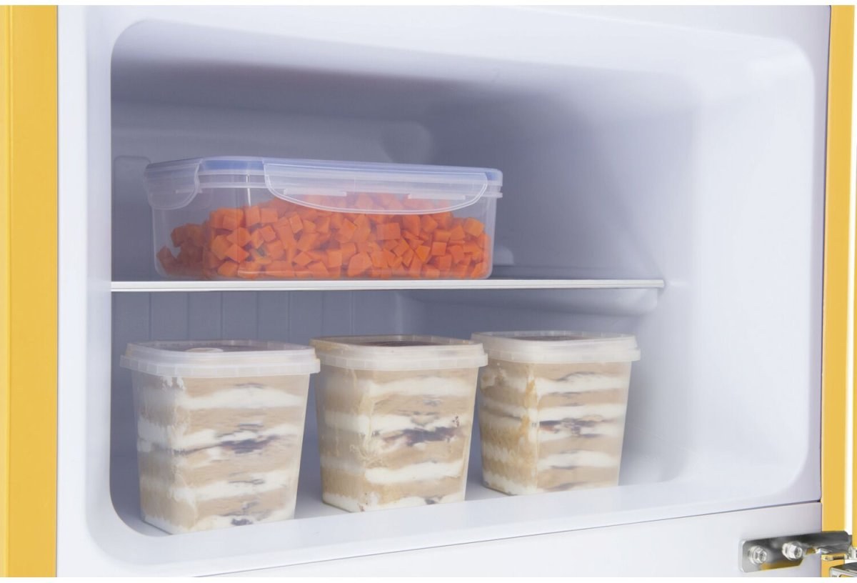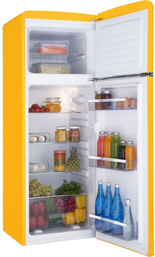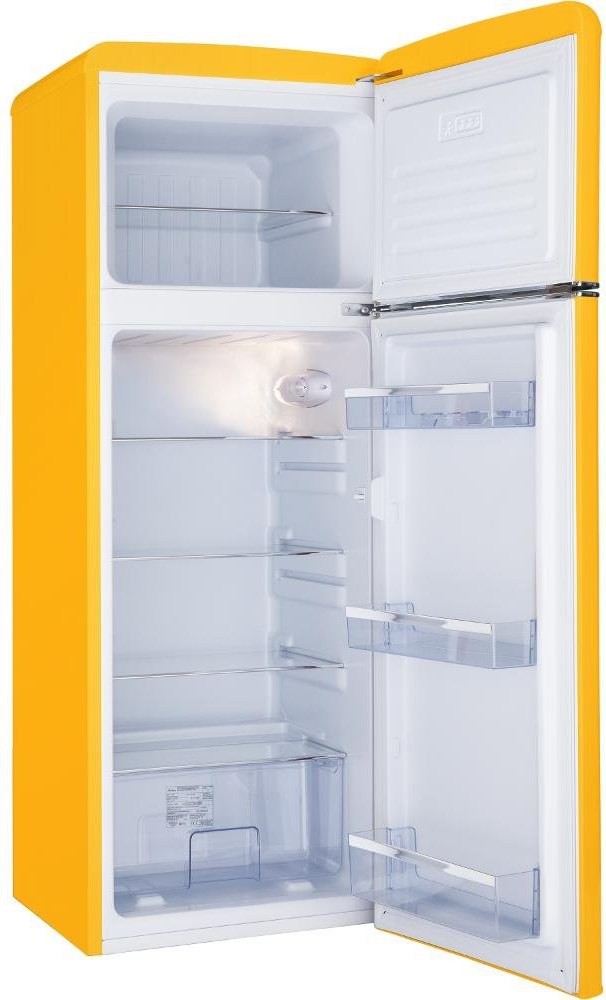 chladnička viacdverová kombinovaná, energetická trieda (A-G): E, farbá žltá, objem 206 l, objem mrazničky 44 l, hlučnosť 39 dB, klimatická trieda ST (18 - 38°C), mraziaci výkon 2 kg za deň, manuálne odmrazovanie mrazničkyZobraziť viac