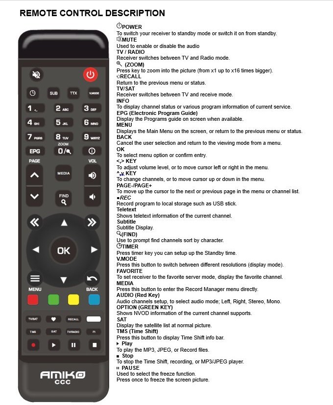 diaľkový ovládač pre prijímače AmikoZobraziť viac