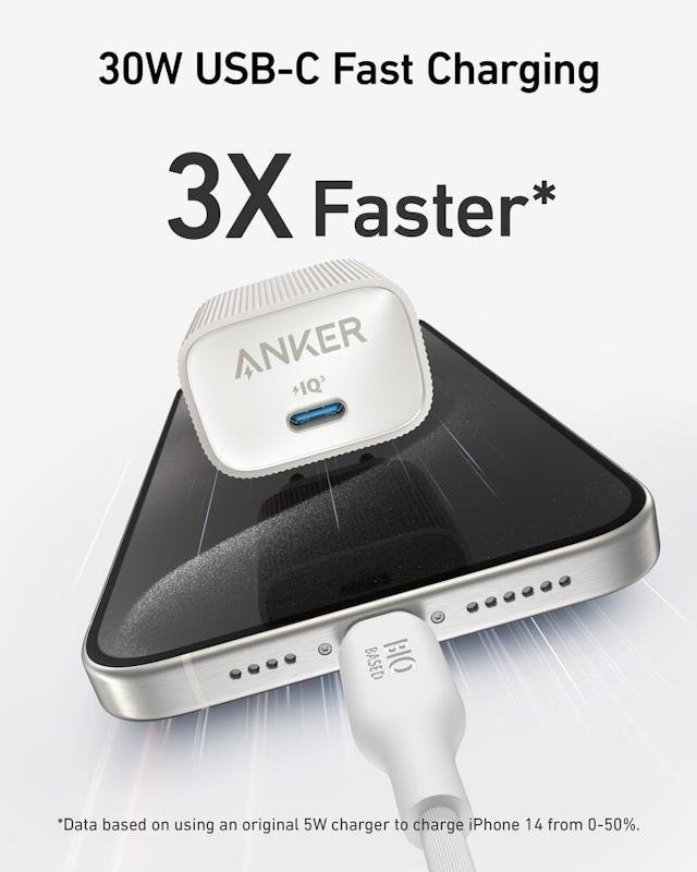 Anker 511 Nano 30W, nabíjačka do siete, USB-C, biela