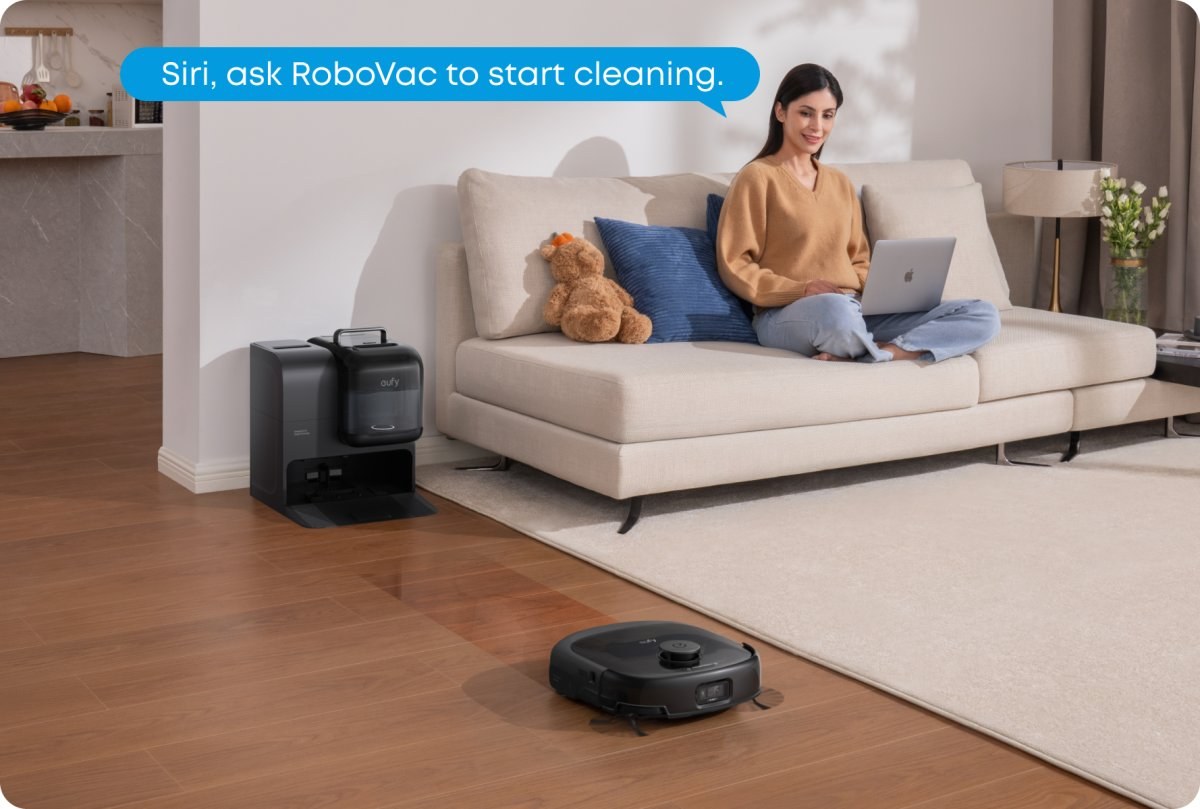 Ovládajte upratovanie bez námahy pomocou hlasových príkazov. Jednoducho požiadajte robotický vysávač, aby začal upratovať, a on začne svoju prácu.