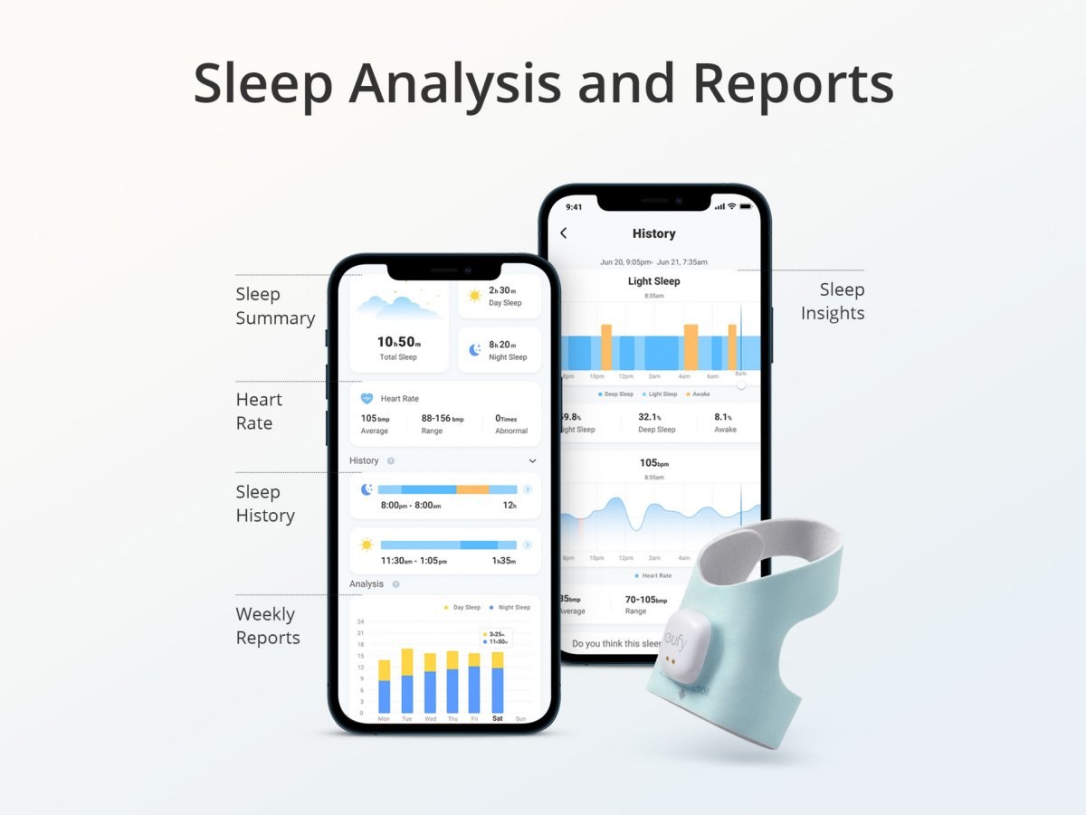 Optimalizované pre presné údaje a vyhodnotenia: Získajte personalizované sledovanie a správy o spánkových návykoch vášho dieťaťa vďaka optimalizovaným algoritmom a Fresnelovej šošovke. Prehliadnite si kľúčové údaje, ako sú srdcová frekvencia a hladina kyslíka v krvi za posledných 48 hodín.