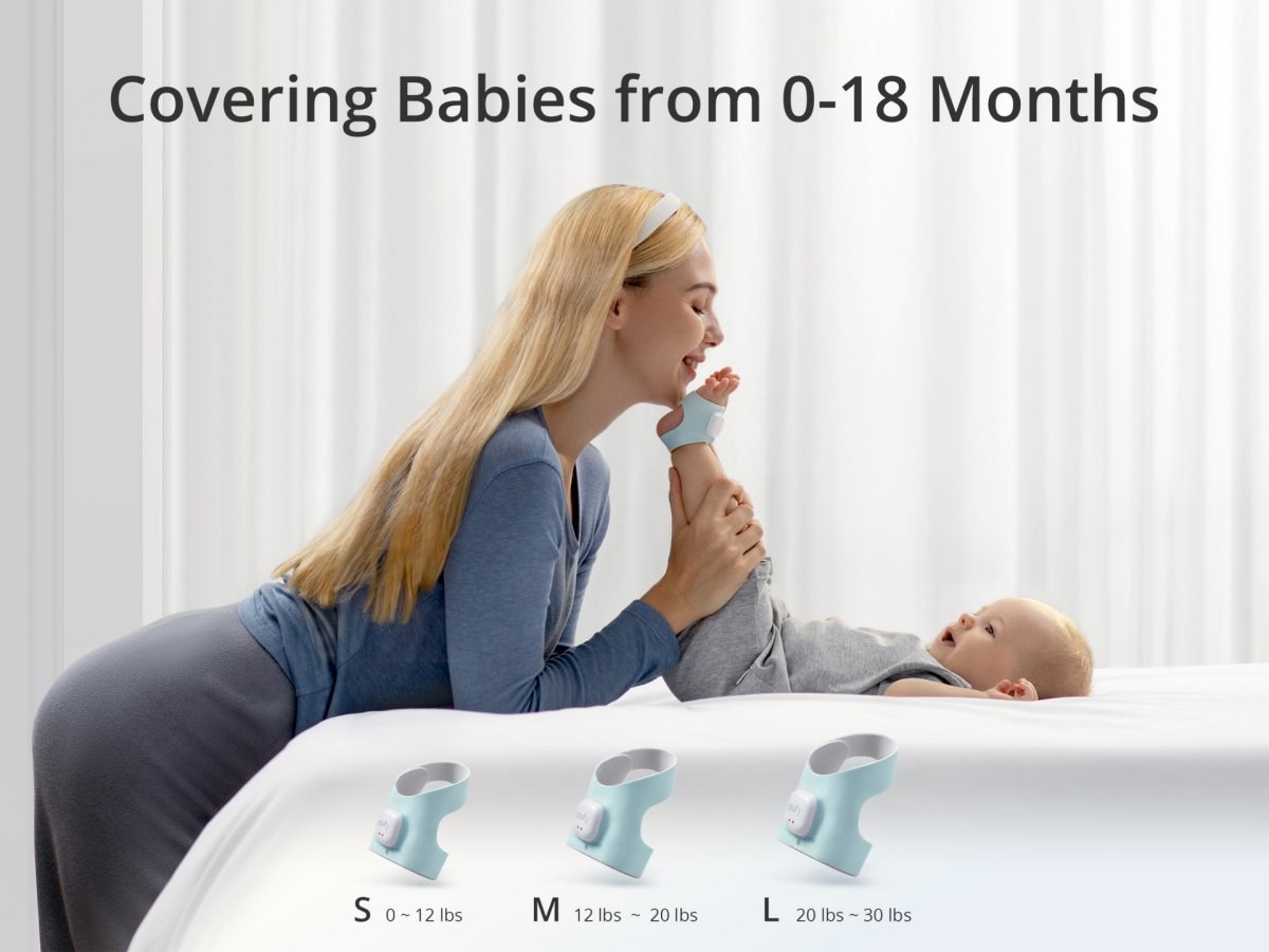 Pohodlné a ľahko nositeľné pre deti vo veku 0–18 mesiacov: Ponožky Smart Sock s 24-hodinovou výdržou batérie sú odolné voči znečisteniu, pružné, mäkké a prateľné. Sú k dispozícii v 3 veľkostiach, takže rastú spolu s vaším dieťaťom.