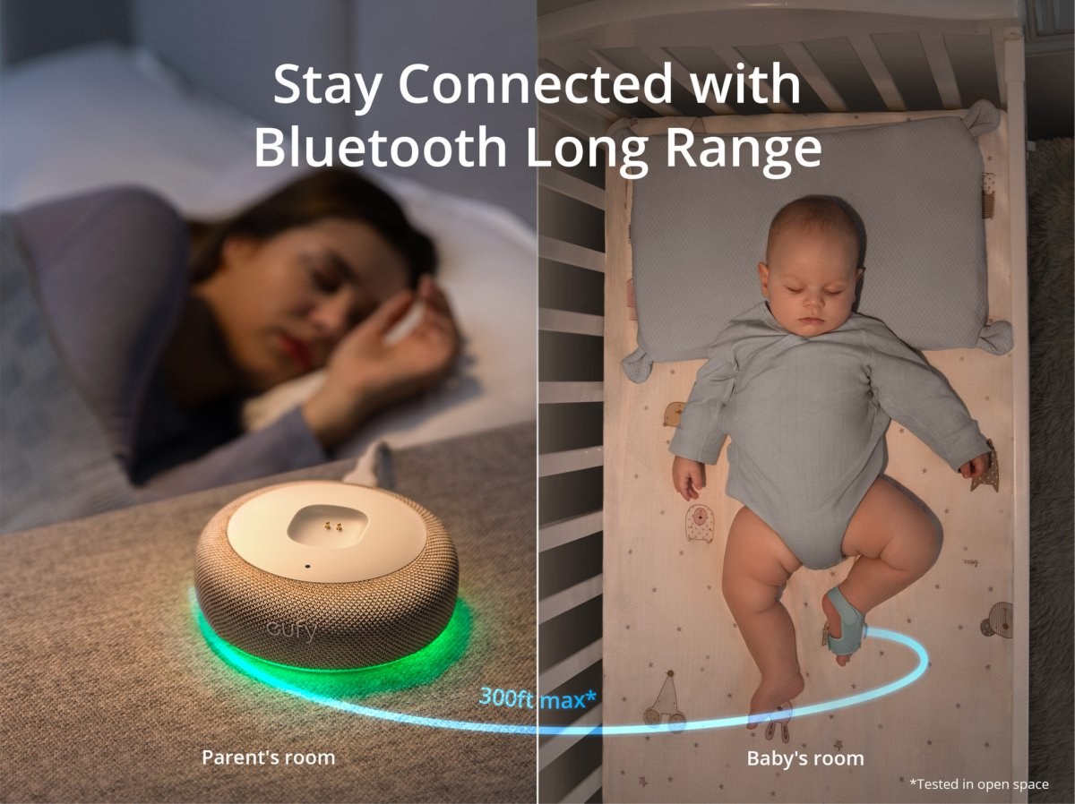 Ponožka sa pripája k základni prostredníctvom Bluetooth Low Energy 5.0, základňa a kamera potom komunikujú cez Wi-Fi. Okamžité upozornenia v aplikácii vás informujú o plači dieťaťa, zmenách vitálnych funkcií, odpojení ponožky alebo výkyvoch teploty v izbe. Bez mesačného predplatného – všetky údaje a historické správy sú k dispozícii zadarmo.