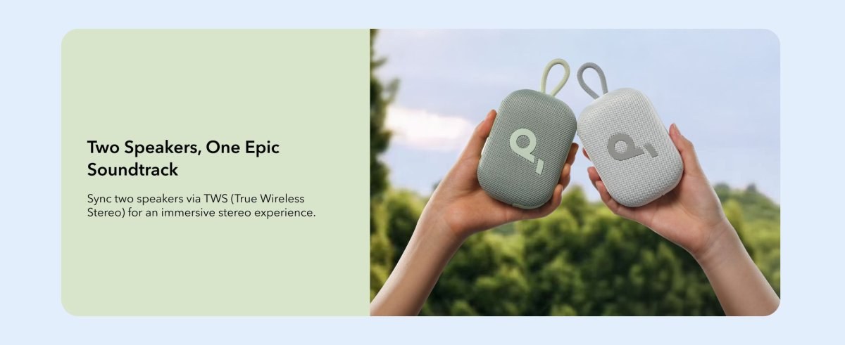 Vďaka ľahkej konštrukcii a integrovanému popruhu sa tento outdoorový reproduktor ľahko prenáša, či už ste na turistike, na bicykli alebo len na prechádzke.