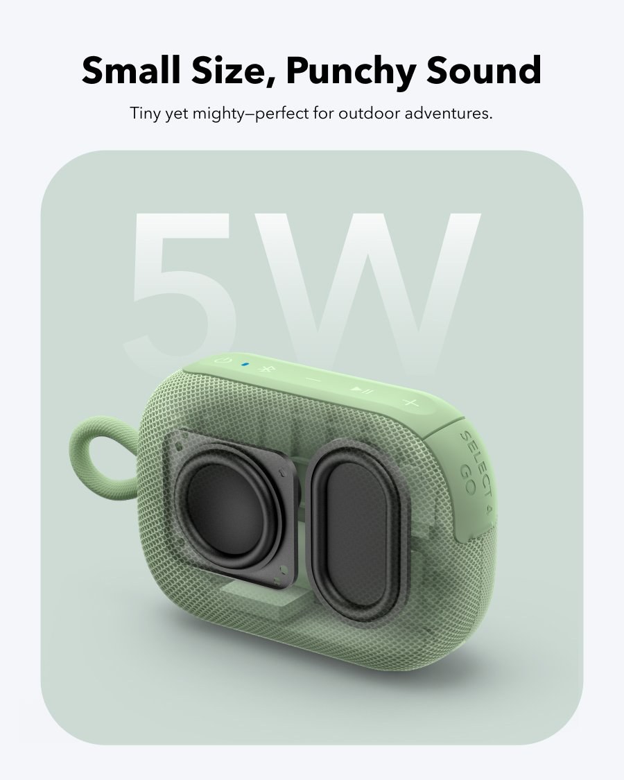 Tento kompaktný reproduktor Bluetooth je síce malý, ale jeho čistý a výkonný 5W zvuk je ohromujúci.