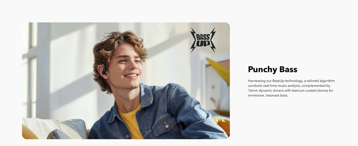Ponorte sa do výnimočného pohodlia s našimi slúchadlami do uší, ktoré poskytujú otvorený a nerušivý dizajn. Vychutnajte si počúvanie bez tlaku počas celého dňa.