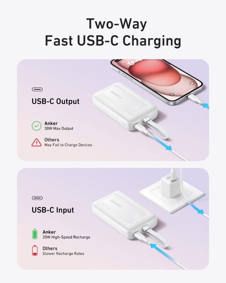 Anker Zolo powerbanka 10000mAh, 30W s káblom USB-C, čierna