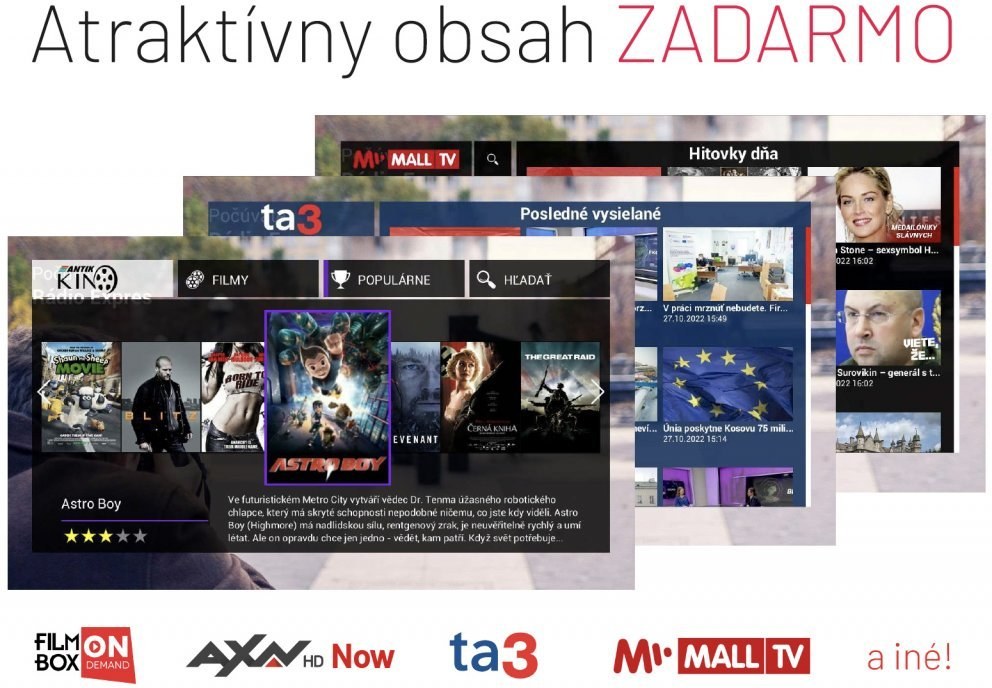 Bezplatný vstupný balík obsahuje viaceré zaujímavé slovenské či české programy. Ďalšie programy je možné získať zakúpením platených balíkov vrátane HD, či 4K programov. Jedinečná funkcia TV Plugin umožňuje pridávať do zoznamu programov vlastné zdroje videa a TV kanálov ako kamery či internetové streamy.