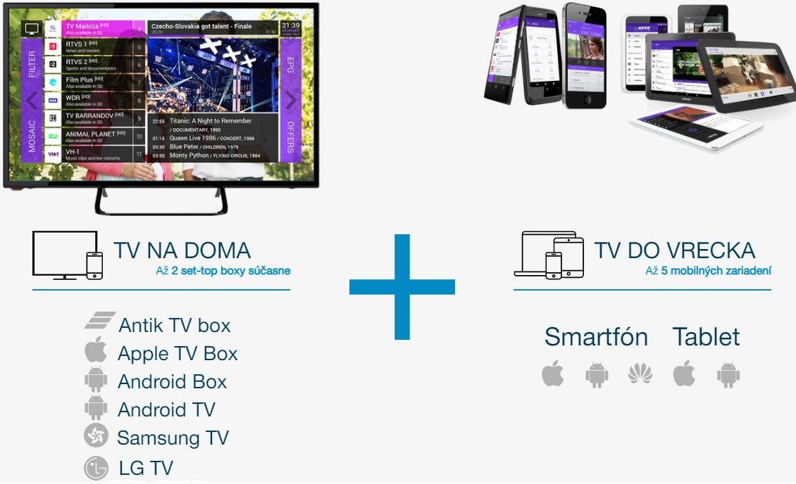 Ste často na miestach bez príjmu bežných slovenských či českých programov? Antik TV prinesie cez internet aj do Vašej obývačky Vaše obľúbené stanice bez ohľadu na to, kde práve bývate.- Živé vysielanie 90 slovenských a českých TV staníc