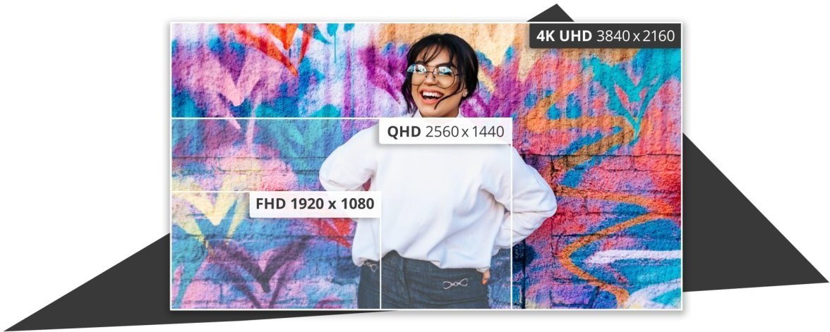 Rozlíšenie Počet pixelov, ktoré môže obrazovka zobraziť horizontálne a vertikálne. Napríklad rozlíšenie 1920 × 1080 znamená, že obrazovka má 1920 pixelov na šírku a 1080 pixelov na výšku. Vyššie rozlíšenie znamená ostrejší a detailnejší obraz, pretože na rovnakej ploche je zobrazených viac bodov.
