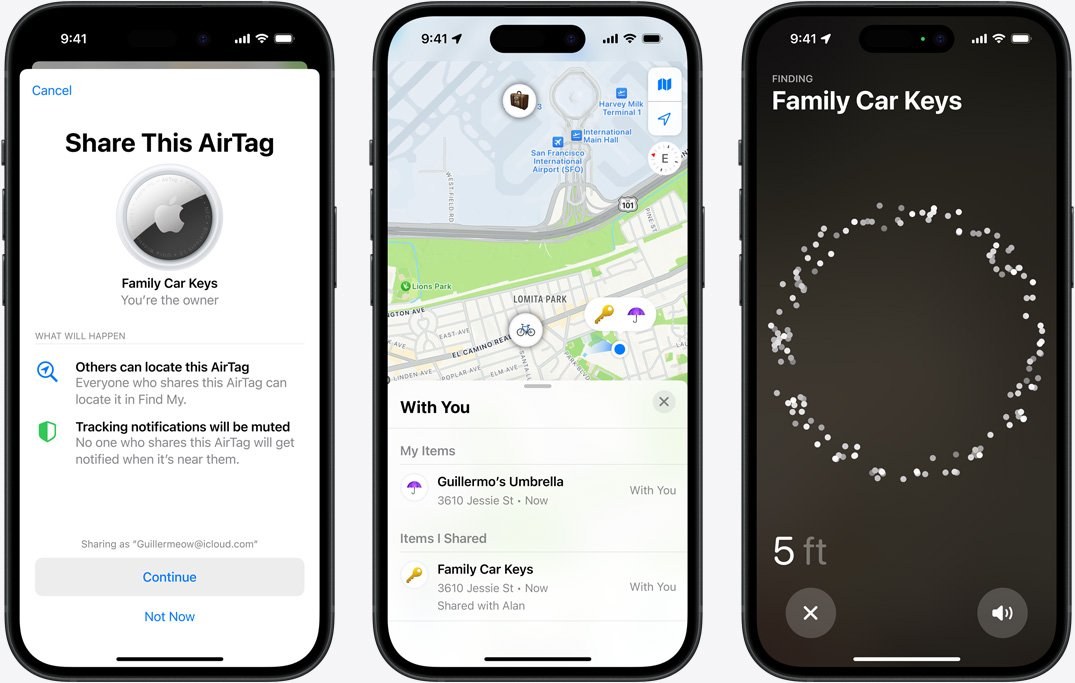 Nová funkcia umožňuje dočasne a bezpečne zdieľať polohu strateného predmetu s dôveryhodnými tretími stranami, napríklad s viac ako 50 partnerskými leteckými spoločnosťami. Zdieľanie je časovo obmedzené na maximálne 7 dní a je možné ho kedykoľvek ukončiť.