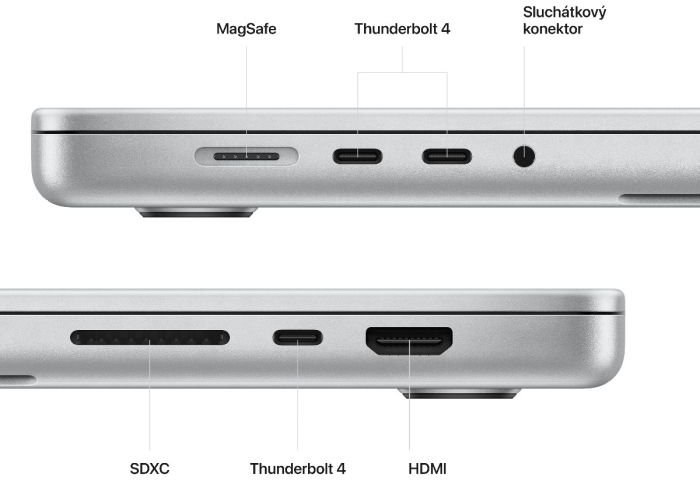 3x Thunderbolt 4 / USB-C port s podporou pre: Nabíjanie, DisplayPort, Thunderbolt 4 (až 40 Gb/s), USB 4 (až 40 Gb/s)