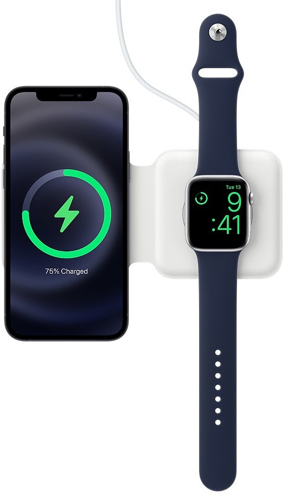 Nabíjačka MagSafe Duo pohodlne nabíja váš kompatibilný iPhone, Apple Watch, bezdrôtové nabíjacie puzdro pre AirPods a ďalšie zariadenia s certifikáciou Qi.