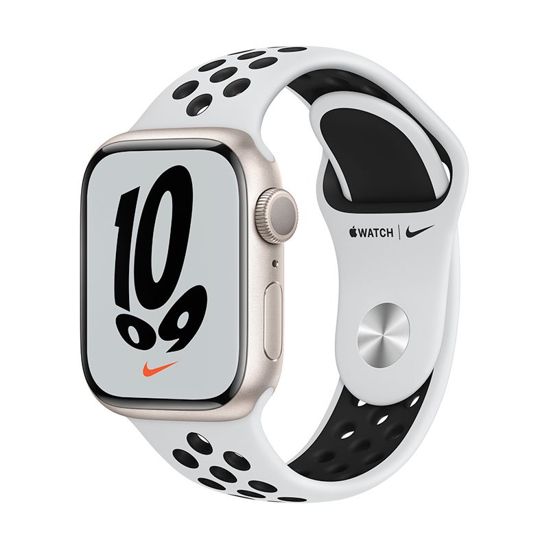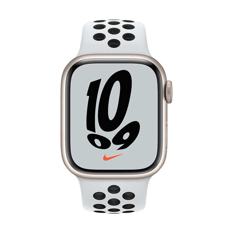 Apple Watch Nike Series 7 GPS, 41mm Starlight Aluminium Case with Pure Platinum/Black Nike Sport Band - Regular