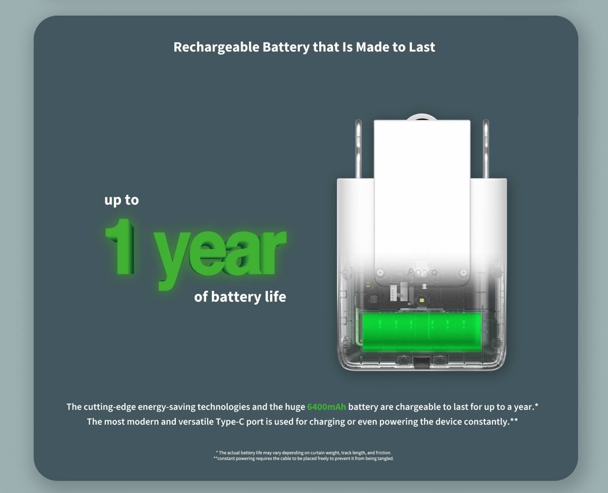Výdrž batérií 1-rok*: Vďaka technológiám úspory energie je Curtain Driver E1 ovládačom s najvyššou životnosťou svojho typu. Na nabíjanie môžete zabudnúť až na rok.