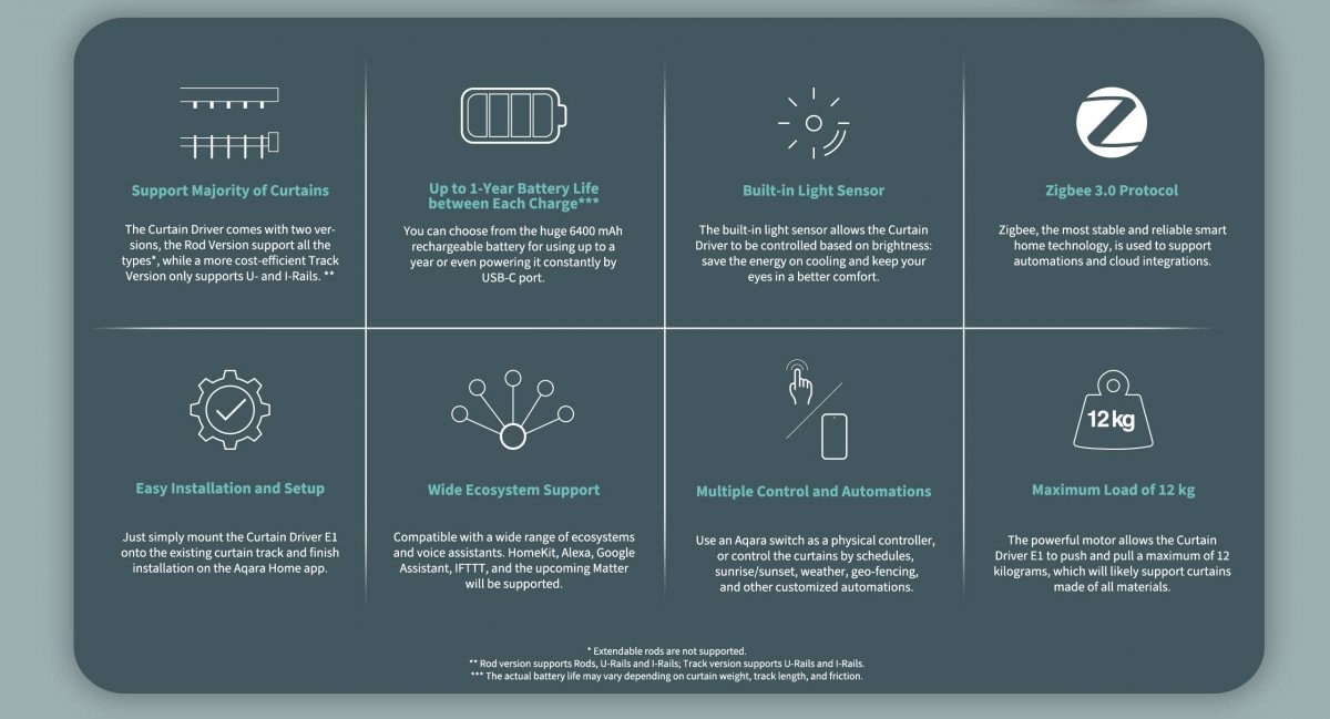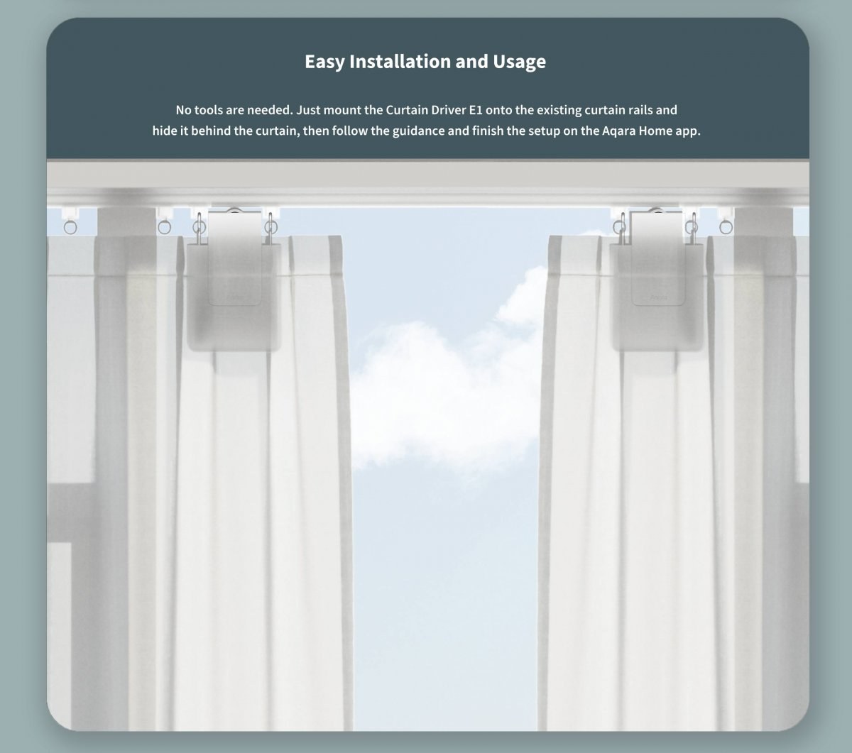 Vstavaný svetelný senzor: Vstavaný svetelný senzor umožňuje automatické ovládanie závesu E1 na základe aktuálneho jasu: ak je vonku príliš jasné svetlo, závesy sa samy otvoria a naopak!