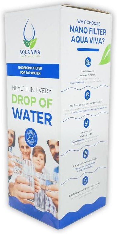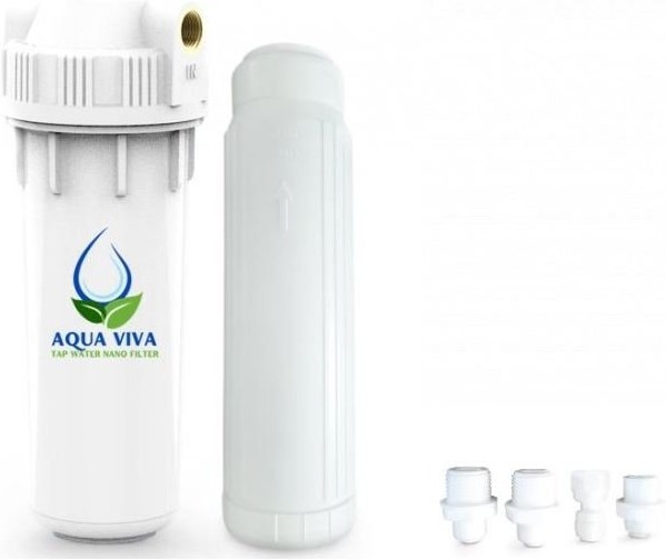 AQUA VIVA nano filter v inštalačnej sade s hadičkami. Inštalačná sada pri prvom nákupe ZADARMO!Všetko potrebné na prvú inštaláciu. Patentovaný filter zaistí v každej domácnosti tú najčistejšiu kohútikovú vodu bez kontaminantov a škodlivín. Zároveň tieto filtre, na rozdiel od bežných, nezarastajú vírusmi a baktériami, ktoré vyčistenú vodu znova kontaminujú. AQUA VIVA je pokrokové riešenie, ktoré zaručí najlepší možný výsledok – skutočne čistú vodu.