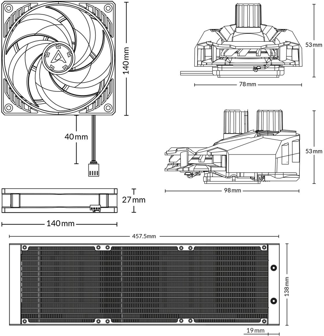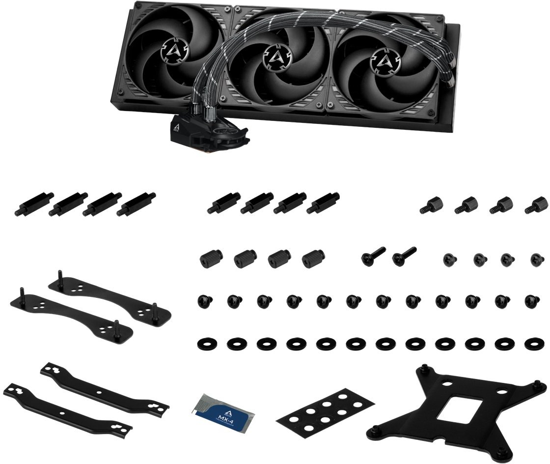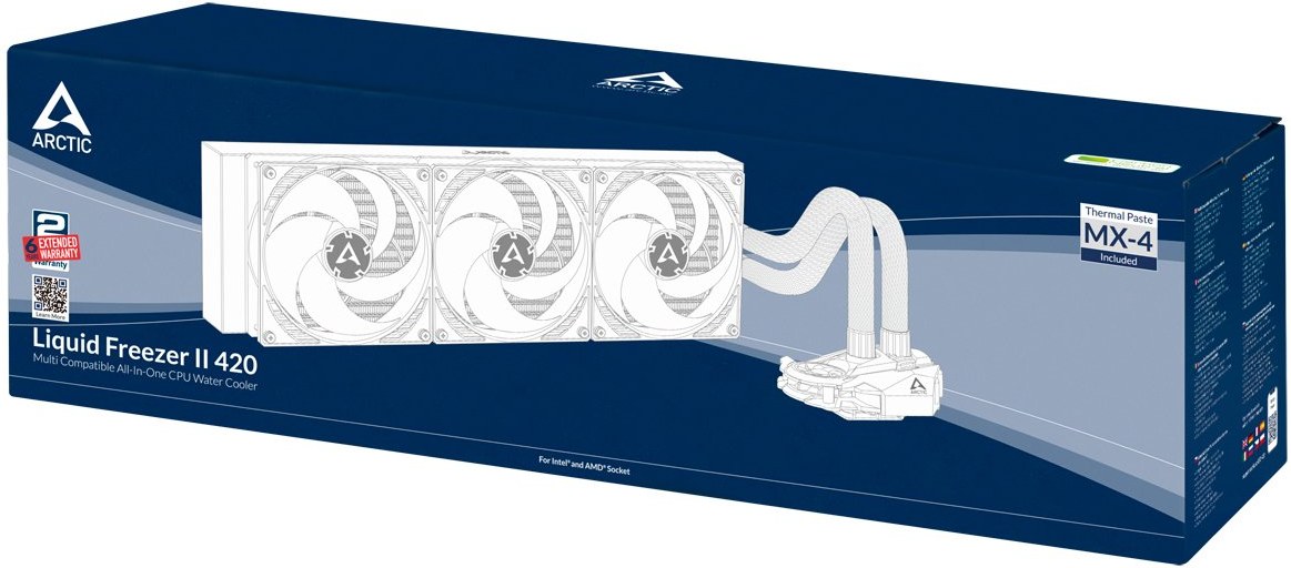ARCTIC Liquid Freezer II 420Vodní chladič určený pro chlazení široké škály procesorů. Vyznačuje se vysokou kvalitou, výkonem a spolehlivostí. Vybaven je třemi 140 mm velkými ventilátory, které disponují kvalitními FDB ložisky zajišťujícími dlouhotrvající bezproblémový chod. Odolné opletené hadice jsou dlouhé 450 mm a díky dostatečně širokému průměru zaručují plynulý průtok chladicí kapaliny.