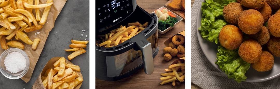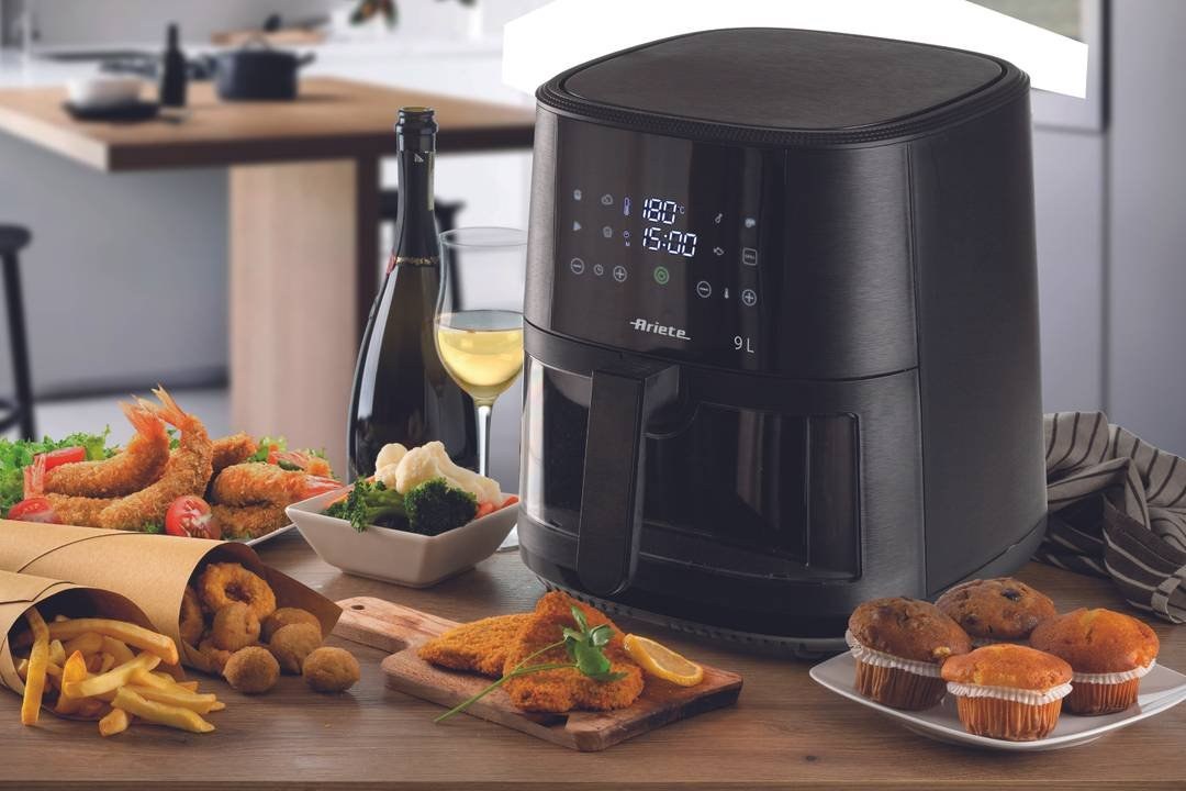 Teplovzdušná bezolejová fritéza Ariete Air Fryer s priehľadným košom s kapacitou 9 litrov (až 3,5 kg potravín) je dokonalá pre zdravé varenie a vyprážanie. Tento spotrebič vám umožní pripravovať pokrmy zdravým spôsobom s minimálnym použitím tuku, pričom si zachováva vysokú účinnosť. Vďaka rovnomernej distribúcii horúceho vzduchu zaistí perfektné a rovnomerné prepečenie jedla zo všetkých strán.