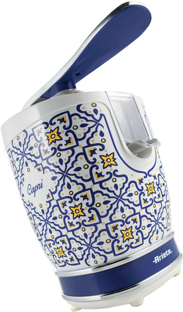 Jednoduché geometrické vzory, jasné farby, inšpirácia námornými prvkami. Ariete prináša kolekciu produktov inšpirovaných malebným stredomorským ostrovom Capri. Rada domácich spotrebičov Capri, ktorá zahŕňa rýchlovarnú kanvicu, toustovač, odšťavovač na citrusy, stolný mixér a kuchynský robot, dodá vášmu interiéru štýl a atmosféru talianskej pohody.Vlastnosti
