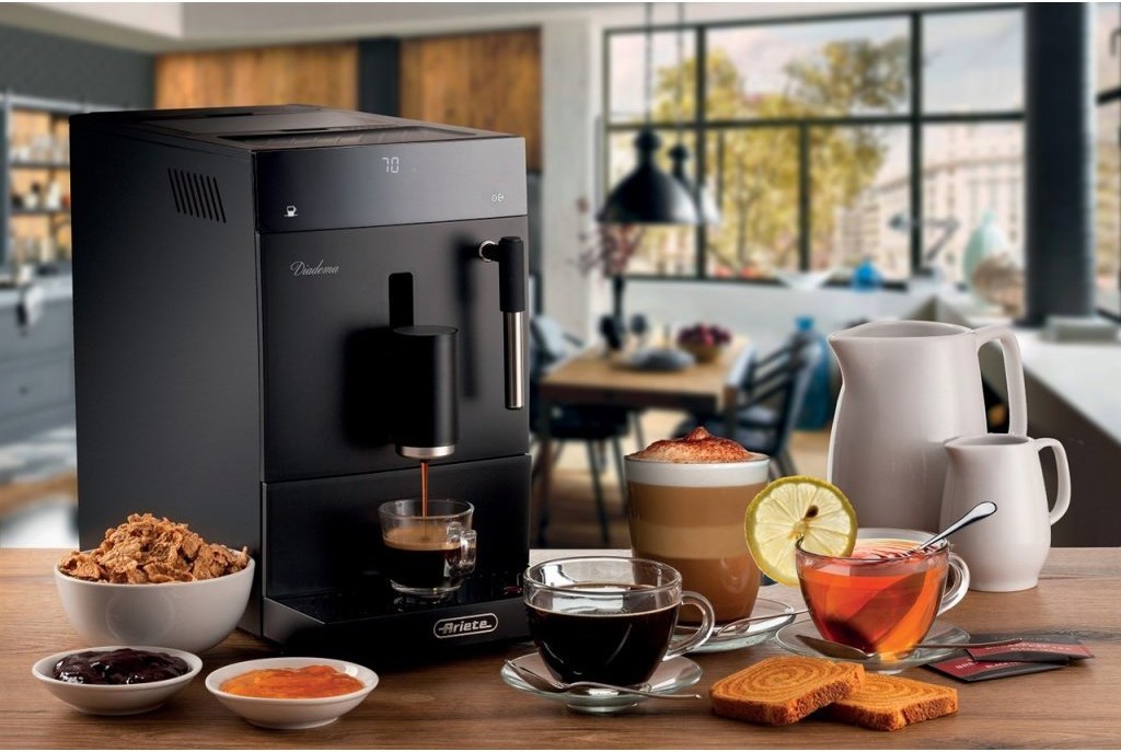 Ariete Diadema 1452 je automatický kávovar, ktorý kombinuje elegantný dizajn s vysokou funkčnosťou. Tento model je ideálny pre všetkých milovníkov kávy, ktorí si chcú vychutnať kvalitný nápoj priamo z pohodlia svojho domova. S jeho modernými technológiami a intuitívnym ovládaním sa príprava kávy stáva jednoduchou a rýchlou.