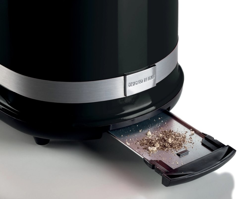 Retro hriankovač je vybavený praktickou vysúvacou miskou na omrvinky, vďaka ktorej je čistenie mimoriadne jednoduché. Stačí ju vytiahnuť, vysypať do koša, a zbavíte sa všetkých pripálených kúskov aj nečistôt bez zbytočného neporiadku. Tento systém je ideálny pre každodenné používanie.Moderný retro dizajn
