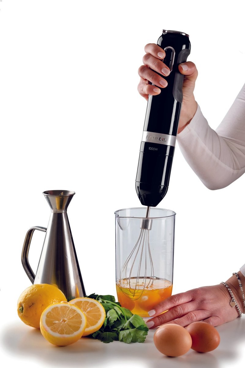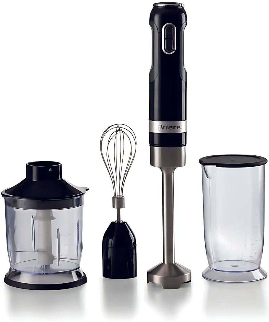 Ariete Moderna Hand Blender 3v1 je výkonný pomocník s 1000 W motorom a 10 rýchlosťami vrátane turbo režimu. Mixuje, seká, šľahá aj mieša od domácej majonézy po drvený ľad či orechy. Čepele z nerezu a bohaté príslušenstvo z neho robia multifunkčný nástroj do každej kuchyne. Vďaka výkonu a všestrannosti dosiahnete dokonalé kulinárske výsledky.Až 10 rýchlostí