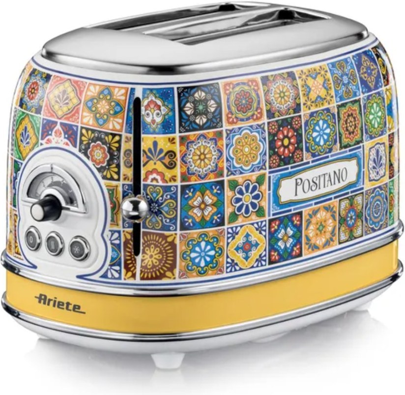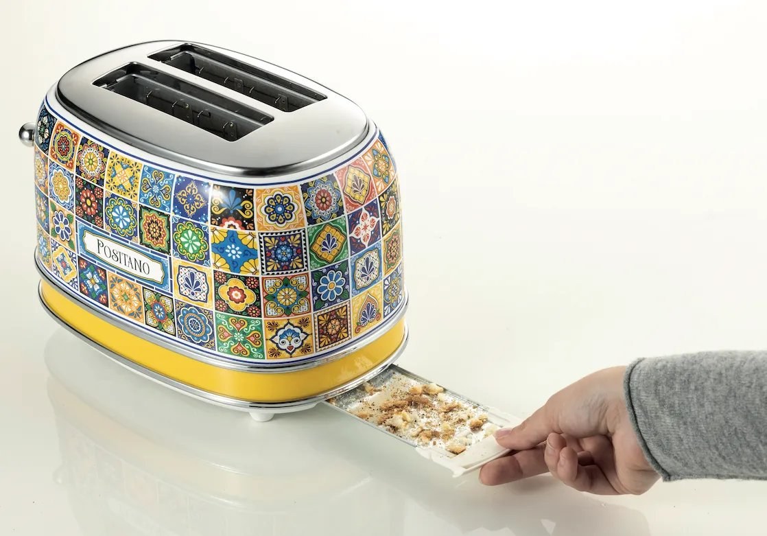 Tento štýlový hriankovač na dve hrianky, inšpirovaný tradičnou pestrofarebnou keramikou juhotalianskeho Positana, vám každé ráno prinesie radosť a hravosť. S jeho šiestimi úrovňami opekania pripravíte hrianky presne podľa svojej chuti, pričom nechýba ani funkcia rozpekania mrazeného pečiva. Automatické vysunutie a vyberateľná miska na omrvinky zabezpečujú jednoduchú údržbu a pohodlné používanie.