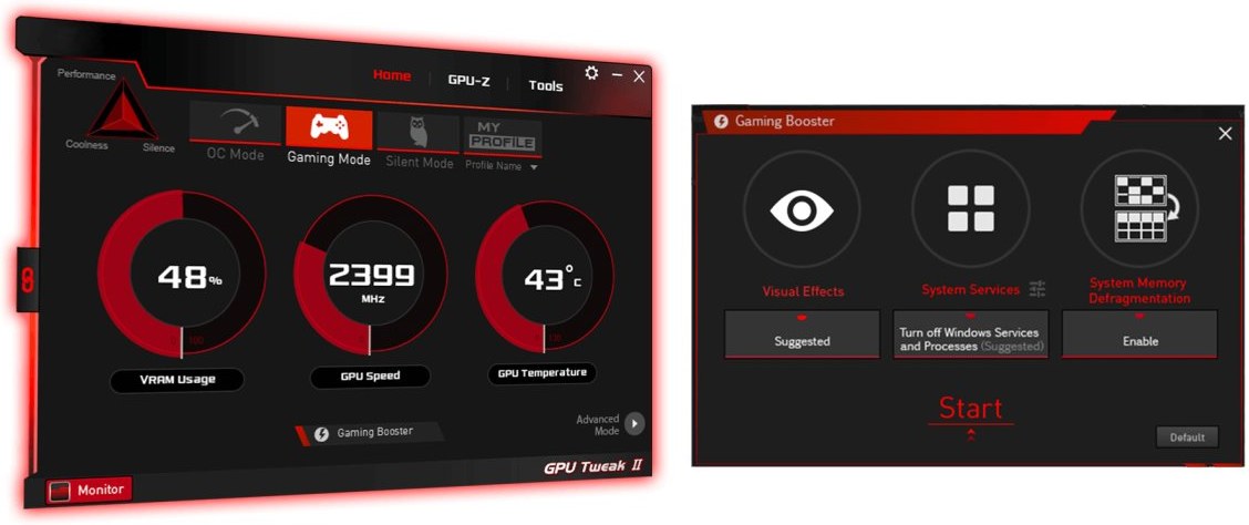 Nástroj ASUS GPU Tweak II posúva ladenie grafickej karty na ďalšiu úroveň. Umožňuje vám vyladiť kritické parametre vrátane taktov jadra GPU, frekvencie pamäte a nastavenia napätia s možnosťou sledovať všetko v reálnom čase prostredníctvom prispôsobiteľného zobrazenia na obrazovke. Zahrnuté je aj pokročilé ovládanie ventilátora spolu s mnohými ďalšími funkciami, ktoré vám pomôžu vyťažiť z grafickej karty maximum.